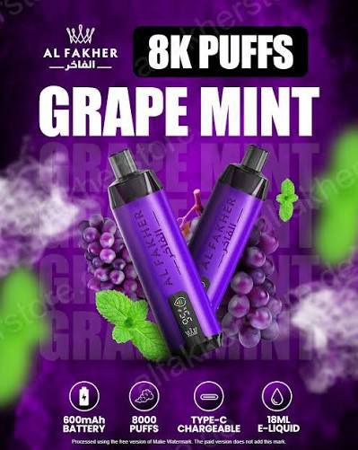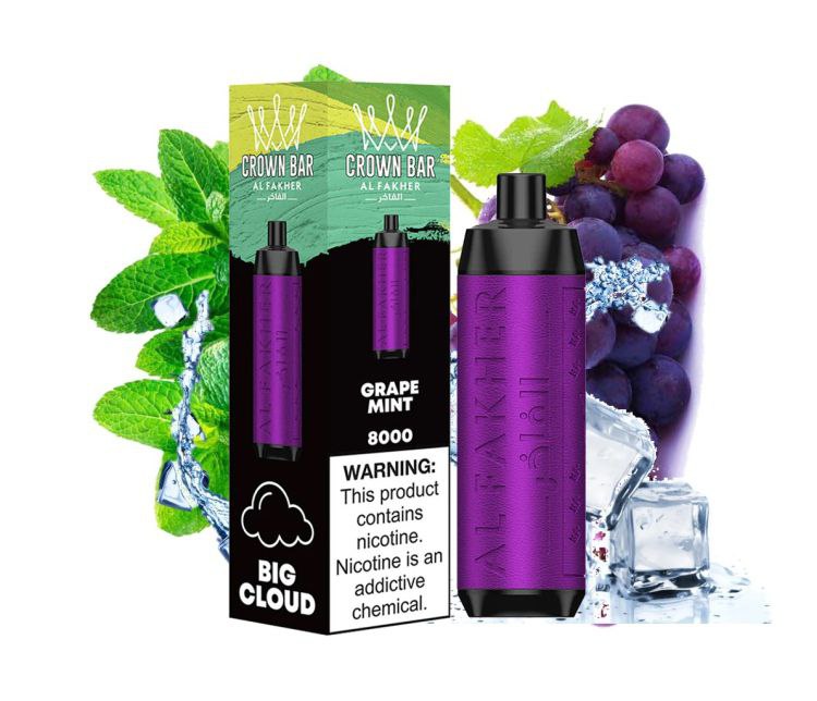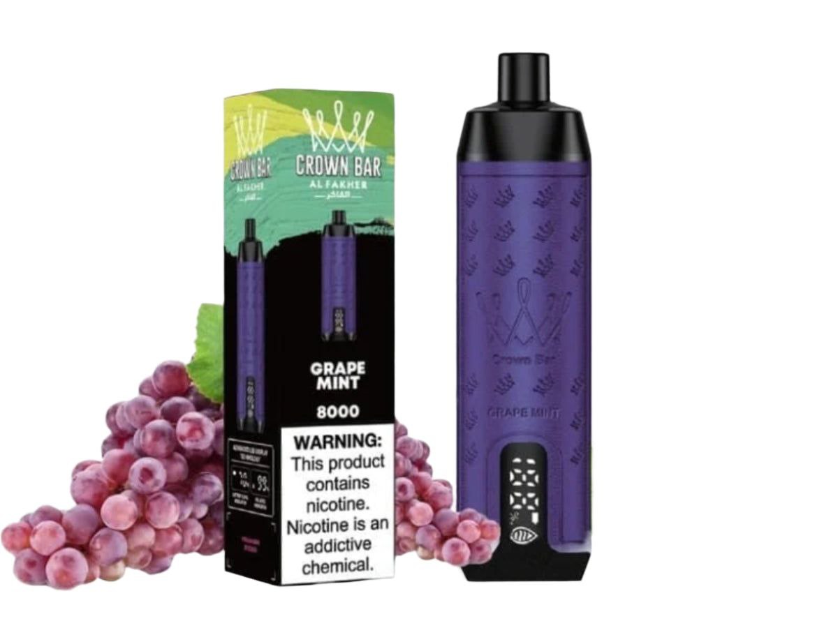 ویپ یکبار مصرف کرون بار الفاخر نعنا انگور ۸۰۰۰ پاف Crown Bar Al Fakher Grape Mint 8000 Puffs Disposable Vape