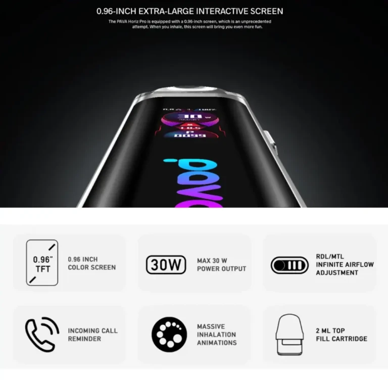 پاوا هوریز پرو پاد ماد | Pava Horiz Pro یک پاد ماد مدرن است که طراحی لوکس، تکنولوژی پیشرفته و عملکرد قابلتنظیم را در قالبی جمعوجور اما قدرتمند ترکیب میکند. این دستگاه برای کسانی مناسب است که به دنبال یک گجت ویپ حرفهای و قابلشخصیسازی هستند. قابلیت هایی جذاب از قبیل طعم دهی عالی در کنار بلوتوث و یادآوری تماس های دریافتی این پاد ماد را به انتخابی خاص در بین پادماد و گجت های هوشمند تبدیل کرده است.
